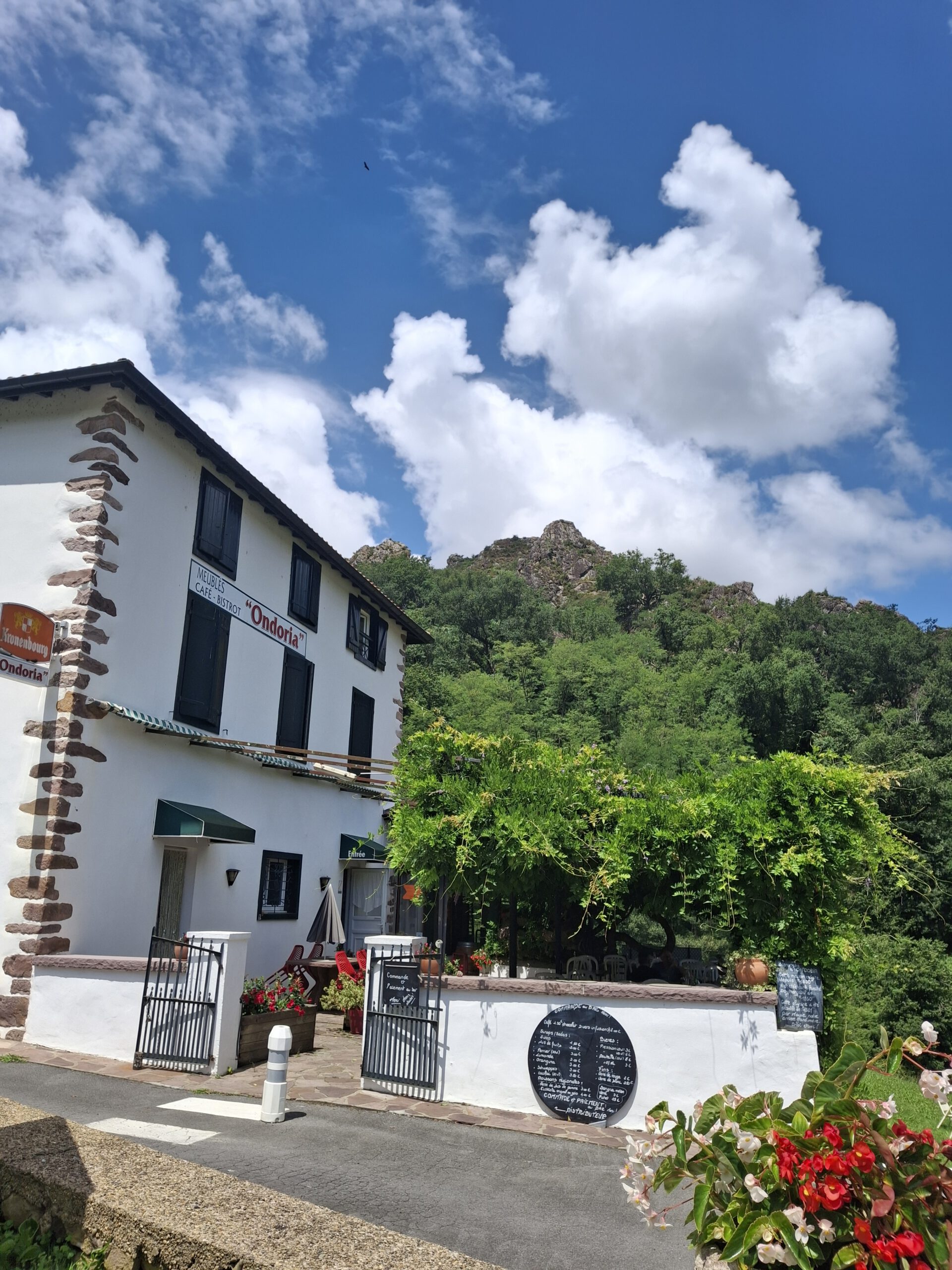 Gegen 13:00 erreichten wir nach ca. 230km unsere Herberge „Ondoria“ in den französischen Pyrenäen und vor allem im Baskenland. Dieses ist hier omnipräsent, es gibt viele baskische Elemente, die Beschilderung ist zweisprachig und man hat den Eindruck, dass die französischen Basken nicht weniger um Autonomie bestrebt sind als die spanischen.