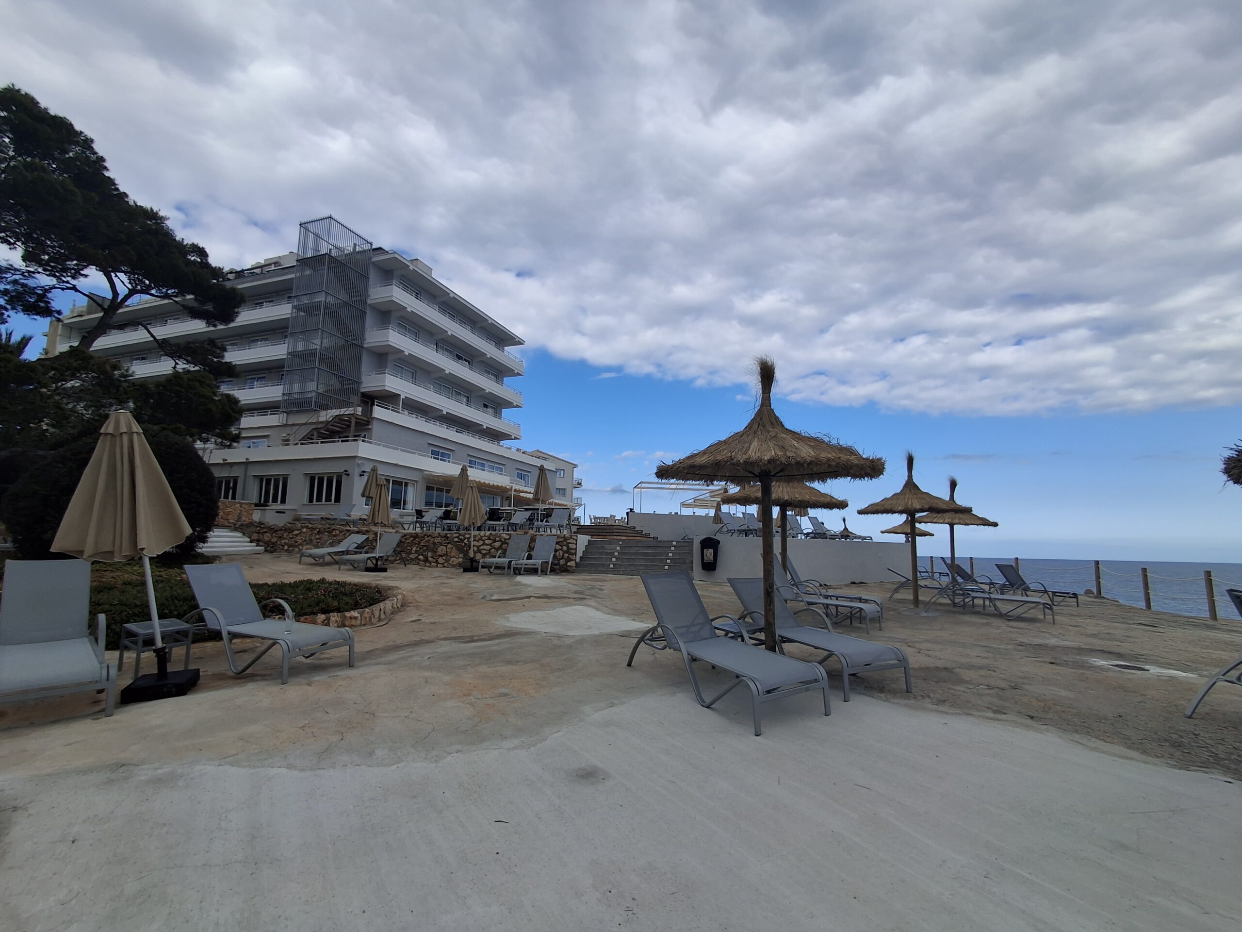 Pünktlich also die Ankunft in Palma de Mallorca, Koffer abholen und wieder warten auf den Transfer zum Hotel. Mit nur 4 Leuten in einem Van ging es nach 30 Minuten dann los Richtung Osten, das Wetter durchwachsen mit mehreren „2. Scheibenwischerstufe Schauern“ erreichten wir gegen 17:00 das Hotel JS Cape Colom. Das Zimmer 201 ist klein aber ausreichend und zur Seite ausgerichtet mit Blick auf die Tennisplätze. Es verfügt über einen kleinen Balkon mit Sonne ab Mittag.