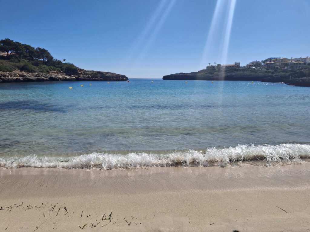 Diese heutige Wanderung wird etwas kürzer und führt über einige Buchten bis zur Bucht „Cala sa Nau“. Nach einem kurzen Stück des Weges, noch in der Stadt, erreichte ich schon die Cala Marcal, eine ziemlich breite Bucht mit Sandstrand, die gut besucht ist, weil sie eben noch in der Stadt liegt, viele Familien und reger Betrieb.